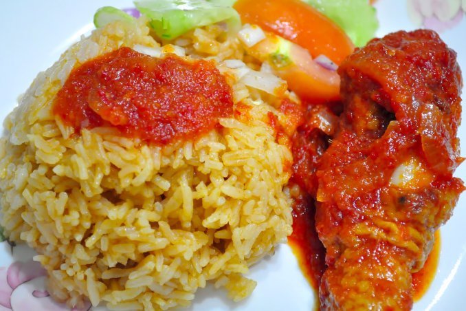 Tomato rice is made using a combination of tomato paste, coconut milk, various spices, together with sautรฉed garlic, onion, and sugar. Available in most Malay restaurants in Langkawi, this sweet-sour rice dish can be paired with a wide range of toppings such as fried chicken or fish and raw vegetables. The cost of this food would be around RM6 to RM10 only.